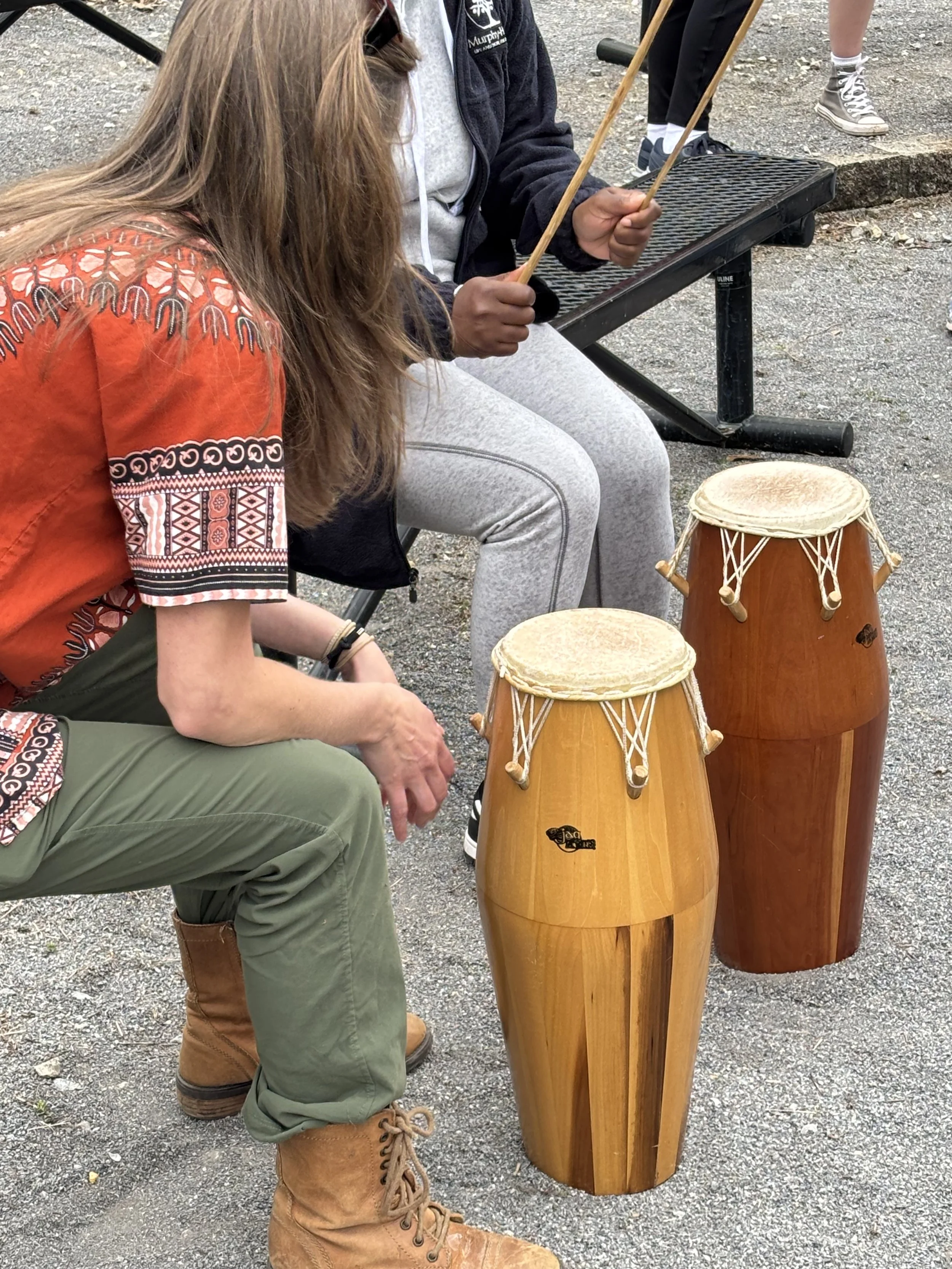 Direct-impact service means that Quadratum members go to sites where there are needs and do what they are asked to do. These needs include gaps in services, uncared-for relationships, or making information available. For the latter, this most often means making and sharing musics with folks we serve. In the above photo, we are at Murphy-Harpst Children’s Home salvaging a volleyball court by removing weeds, rocks, pouring and grading new sand, and later we will string up a new net. Afterwards, we do Ghanaian drumming for and with the residents. Meaning, these teenagers can come up to the drums and learn to play them, guided by Quadratum members themselves.